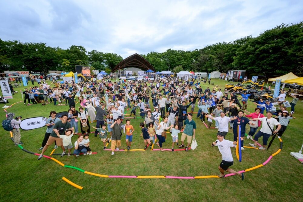 当日は、スラックレール®︎を300本つなげ、子ども達と一緒に「SLACKLINE WORLDCUP OBUSE 2025」の文字を作成。さらに「300人でスラックレール®︎に乗ろう!」という体験型イベントを行いました。結果は260人の参加となり惜しくも目標には届きませんでしたが、一体感に満ちた時間を共有し、多くの方に交流と笑顔が生まれる場となりました。