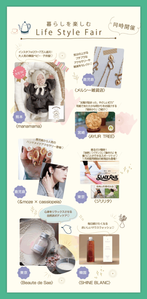 2026年2月5日(木)より宮崎山形屋で開催される「暮らしを楽しむライフスタイルフェア」に、出店させていただきます。